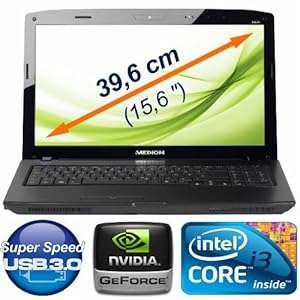 - Intel® CoreTM i3-370M Prozessor, Original Windows® 7 Home Premium, NVIDIA® GeForce® GT425M DirectX® 11 Grafik mit 1.024 MB Speicher, 640 GB Festplatte, 4 GB Arbeitsspeicher, USB 3.0, HDMI Out, DVD-Brenner, non-glare Display, 39,6 cm (15,6")